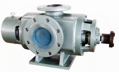 雙螺桿泵是外嚙合的螺桿泵,它利用相互嚙合,互不接觸的兩根螺桿來抽送液體。雙螺桿泵為一種雙吸式非密閉的雙螺桿泵。一端伸出泵外的主動(dòng)螺桿由原動(dòng)機(jī)驅(qū)動(dòng)。主動(dòng)螺桿與從動(dòng)螺桿具有不同旋向的螺紋。螺桿與泵體緊密貼合。從動(dòng)螺桿是通過同步齒輪由主動(dòng)螺桿帶動(dòng)的。